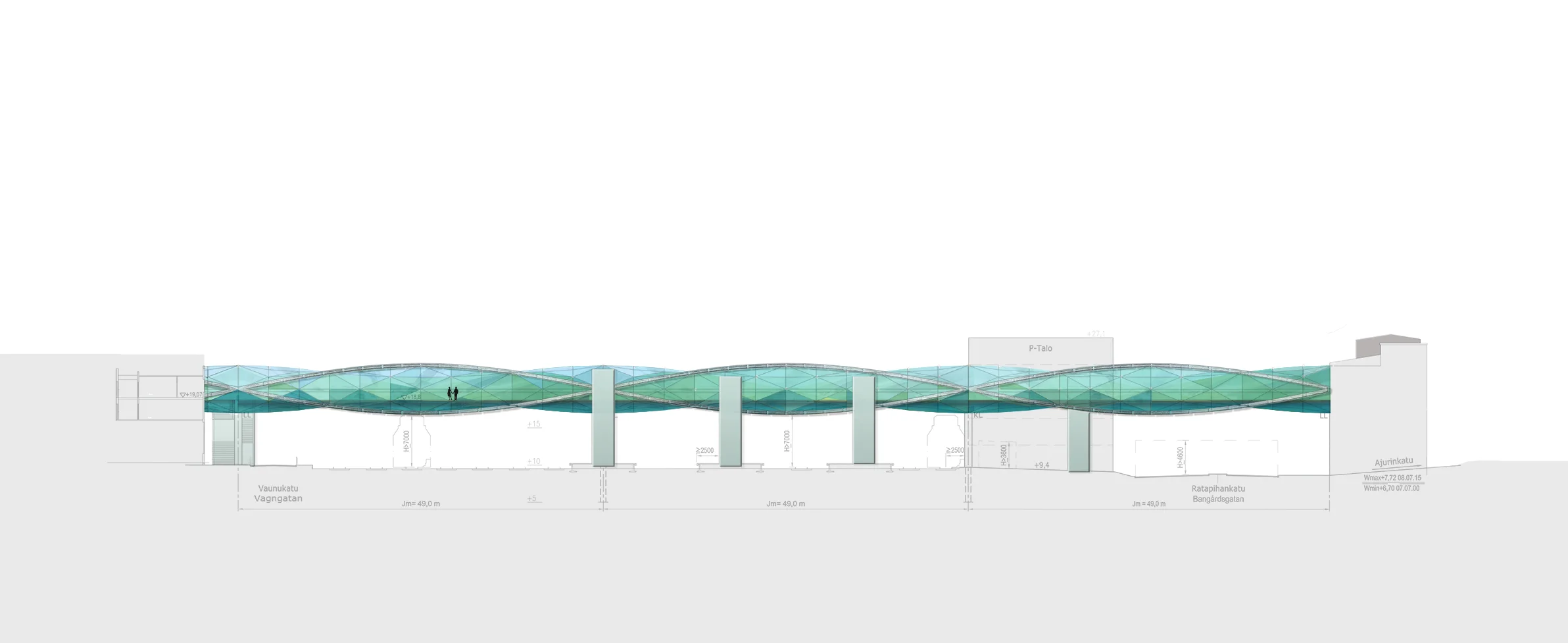 The overall design with the lightweight twisting form was developed by Stephen James from Ramboll UK and engineering was done by Ramboll Finland. My responsibility was to create an integrated artwork that would give the bridge an artistic dimension and a strong identity.